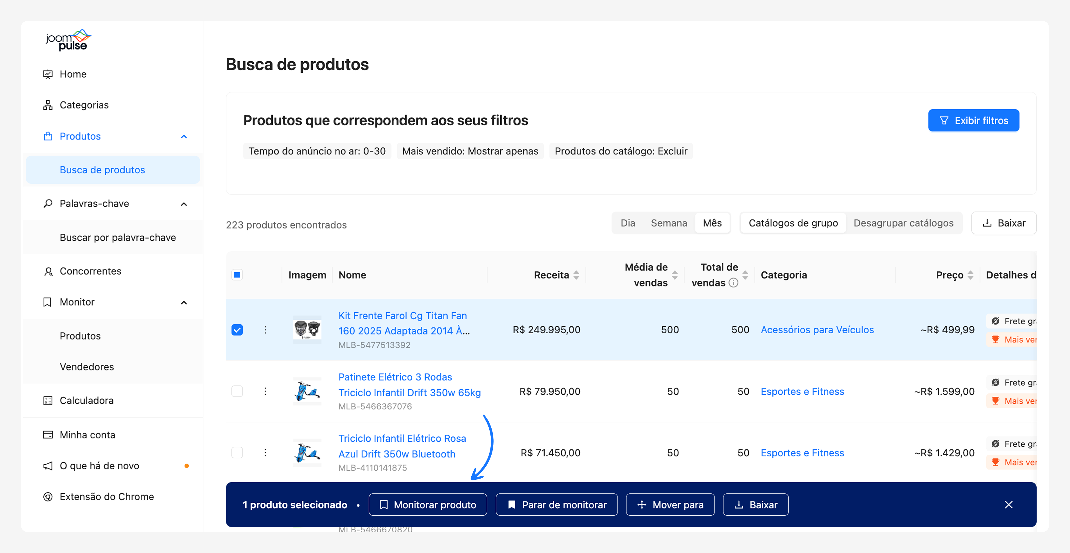 Acompanhe a velocidade de vendas, tendências de busca e movimentações de preços em todas as categorias do Mercado Livre