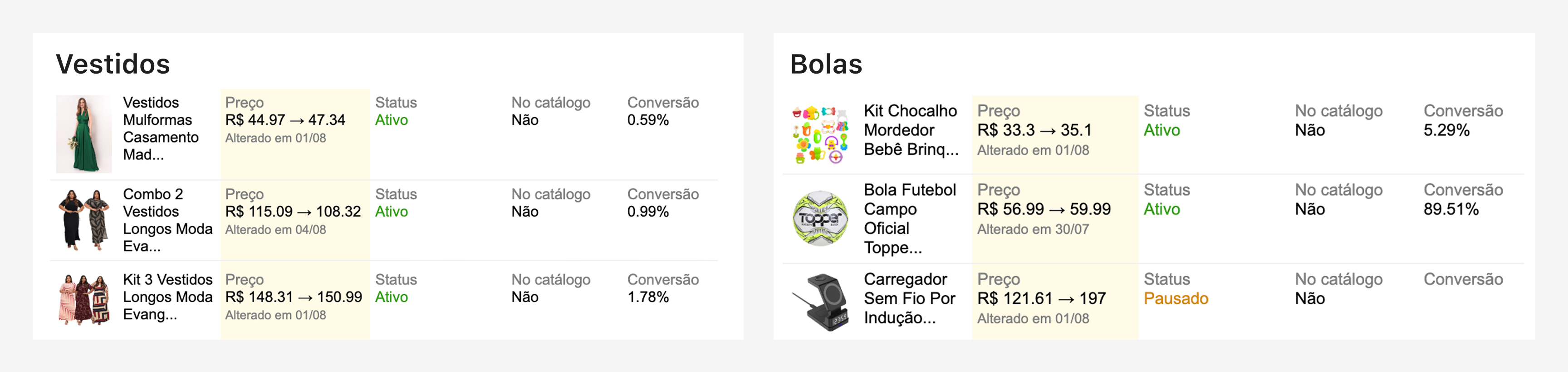 Receba as alterações dos produtos no seu e-mail e analisar por que estão se destacando agora.